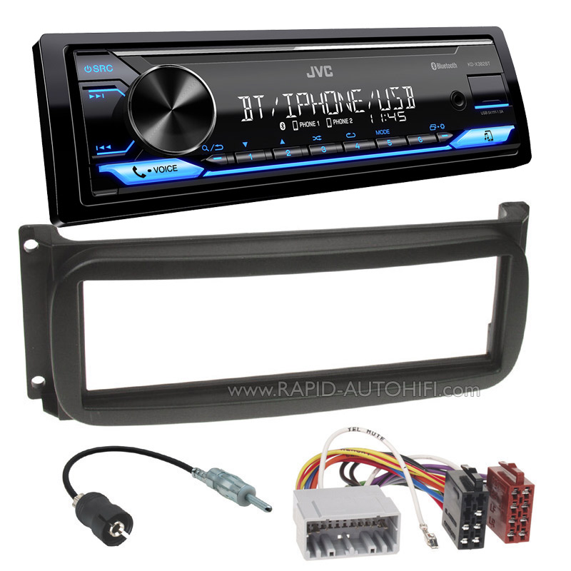 Instalační sada s autorádiem bez CD mechaniky JVC KD-X382BT, které má modře podsvětlené ovládací tlačítka. Autorádio disponuje USB vstupem a přímým připojením telefonů s OS Android (přes USB) a také iPod/iPhone. Hlavní devízou tohoto autorádia je vestavěné Bluetooth rozhraní pro Handsfree a Audiostreaming. Autorádio podporuje funkcni JVC Smart Music (interpretace hudebních souborů z mobilního telefonu s Android OS přes USB nebo Bluetooth). Díky absenci mechaniky má autorádio zmenšenou montážní hloubku (cca 1/2 oproti autorádiu s mechanikou).