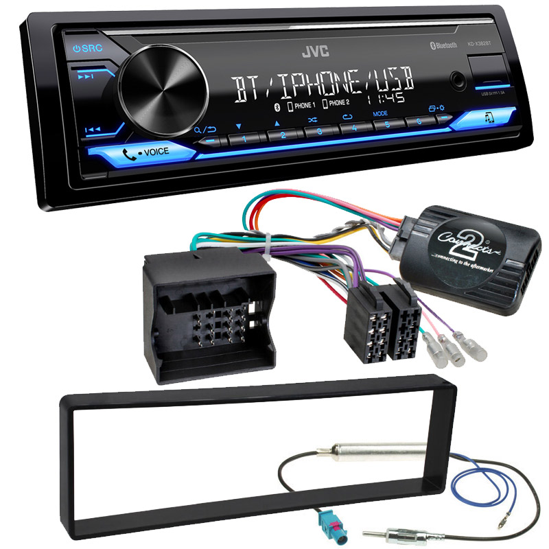 Instalační sada s autorádiem bez CD mechaniky JVC KD-X382BT, které má modře podsvětlené ovládací tlačítka. Autorádio disponuje USB vstupem a přímým připojením telefonů s OS Android (přes USB) a také iPod/iPhone. Hlavní devízou tohoto autorádia je vestavěné Bluetooth rozhraní pro Handsfree a Audiostreaming. Autorádio podporuje funkcni JVC Smart Music (interpretace hudebních souborů z mobilního telefonu s Android OS přes USB nebo Bluetooth). Díky absenci mechaniky má autorádio zmenšenou montážní hloubku (cca 1/2 oproti autorádiu s mechanikou).