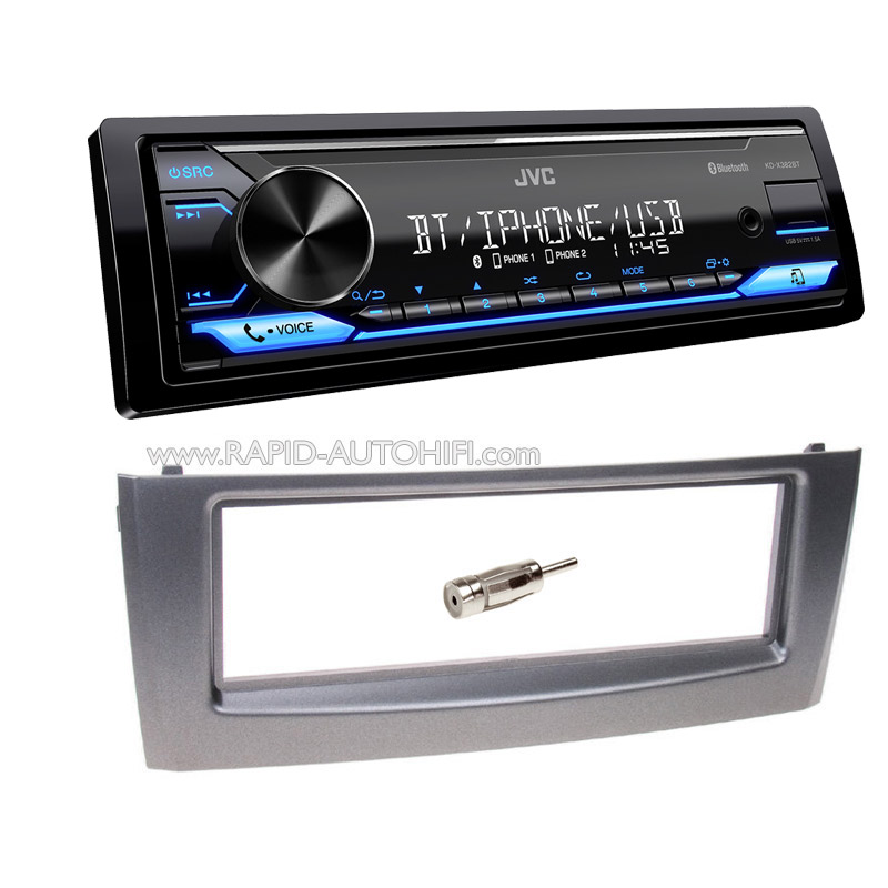 Instalační sada s autorádiem bez CD mechaniky JVC KD-X382BT, které má modře podsvětlené ovládací tlačítka. Autorádio disponuje USB vstupem a přímým připojením telefonů s OS Android (přes USB) a také iPod/iPhone. Hlavní devízou tohoto autorádia je vestavěné Bluetooth rozhraní pro Handsfree a Audiostreaming. Autorádio podporuje funkcni JVC Smart Music (interpretace hudebních souborů z mobilního telefonu s Android OS přes USB nebo Bluetooth). Díky absenci mechaniky má autorádio zmenšenou montážní hloubku (cca 1/2 oproti autorádiu s mechanikou).