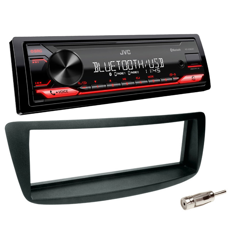 Instalační sada s autorádiem bez CD mechaniky JVC KD-X282BT, které má červeně podsvětlené ovládací tlačítka. Autorádio disponuje USB vstupem a přímým připojením telefonů s OS Android (přes USB) a také iPod/iPhone. Hlavní devízou tohoto autorádia je vestavěné Bluetooth rozhraní pro Handsfree a Audiostreaming. Díky absenci mechaniky má autorádio zmenšenou montážní hloubku (cca 1/2 oproti autorádiu s mechanikou).