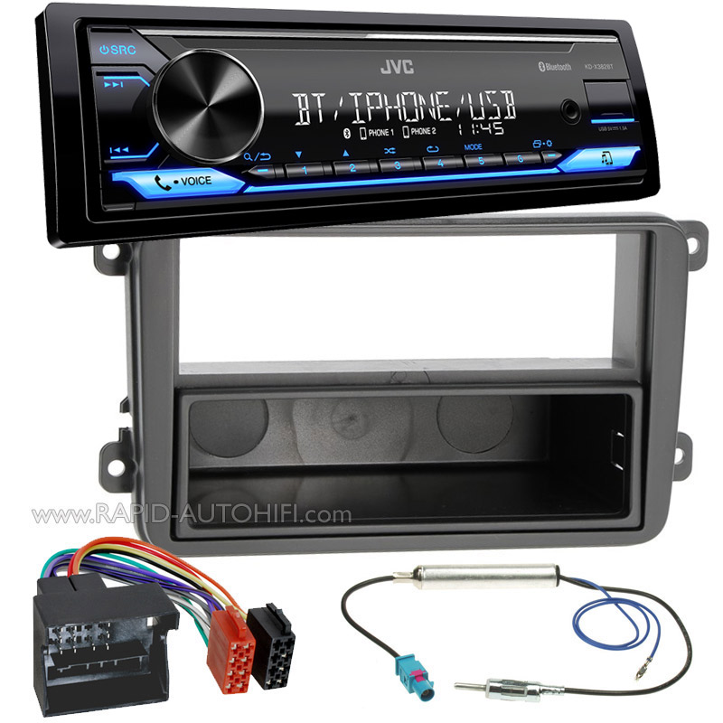 Instalační sada s autorádiem bez CD mechaniky JVC KD-X382BT, které má modře podsvětlené ovládací tlačítka. Autorádio disponuje USB vstupem a přímým připojením telefonů s OS Android (přes USB) a také iPod/iPhone. Hlavní devízou tohoto autorádia je vestavěné Bluetooth rozhraní pro Handsfree a Audiostreaming. Autorádio podporuje funkcni JVC Smart Music (interpretace hudebních souborů z mobilního telefonu s Android OS přes USB nebo Bluetooth). Díky absenci mechaniky má autorádio zmenšenou montážní hloubku (cca 1/2 oproti autorádiu s mechanikou).