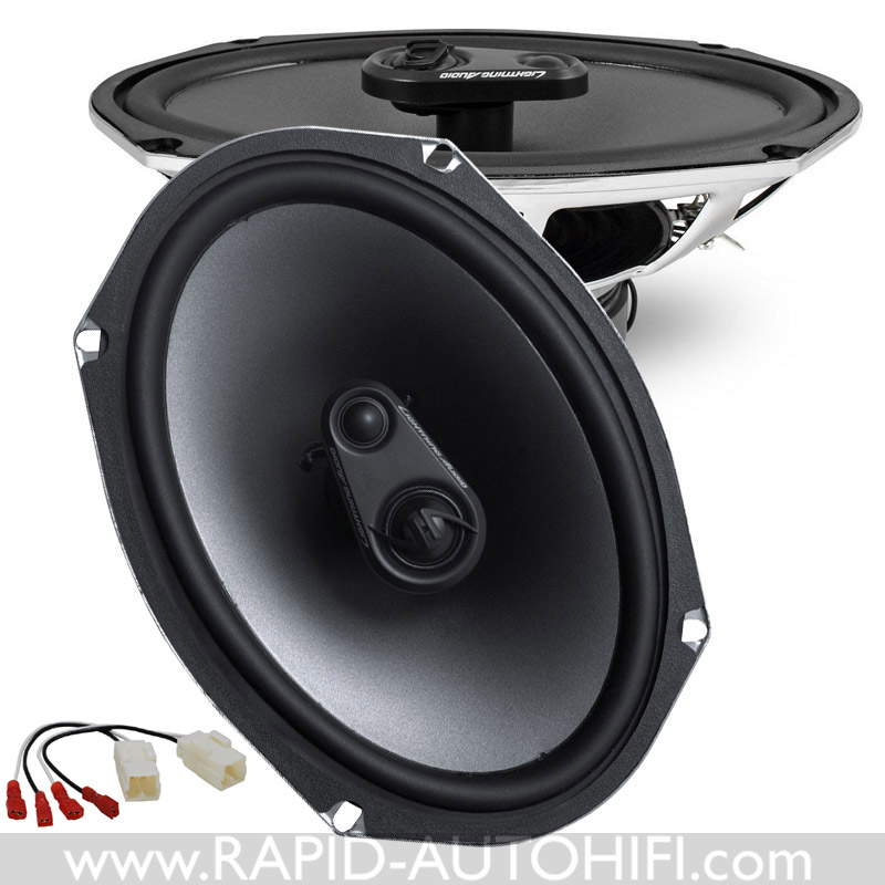 Obsahuje kvalitní 15 x 23 cm oválné 3-pásmové triaxiální reproduktory vyšší řady Strike amerického výrobce Lightning Audio S4.69.3 a kabelové redukce pro připojení reproduktorů do originálního svazku CHRYSLER.