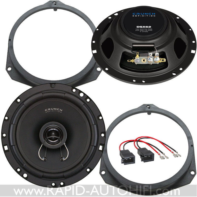 Obsahuje kvalitní 16.5 cm koaxiální 2-pásmové reproduktory DSX62 amerického výrobce CRUNCH a vše potřebné pro korektní výměnu. Tedy plastové montážní redukce a kabelové redukce z originálního kabelového svazku CITROEN na klasické reproduktorové konektory