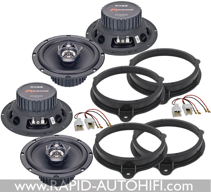 Obsahuje 16.5 cm 3-pásmové reproduktory RX62 německého výrobce Renegade a vše ostatní, co je zapotřebí pro montáž reproduktorů do tohoto typu vozu - Tedy montážní redukce a kabelové redukce z originálního kabelového svazku DACIA na klasické reproduktorové konektory.