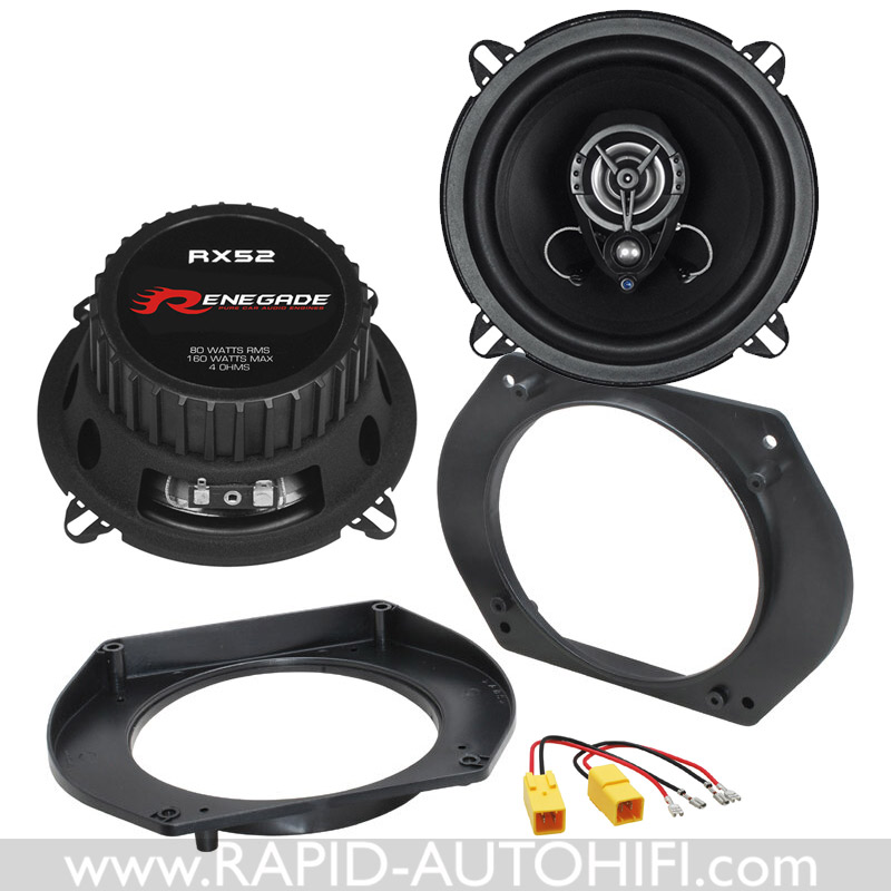 Obsahuje kvalitní 13 cm 2-pásmové koaxiální reproduktory RX52 německého výrobce Renegade a vše potřebné pro korektní výměnu. Tedy montážní redukce do původní pozice originál. reproduktorů a kabelové redukce z originálního kabelového svazku FIAT na klasické reproduktorové konektory.