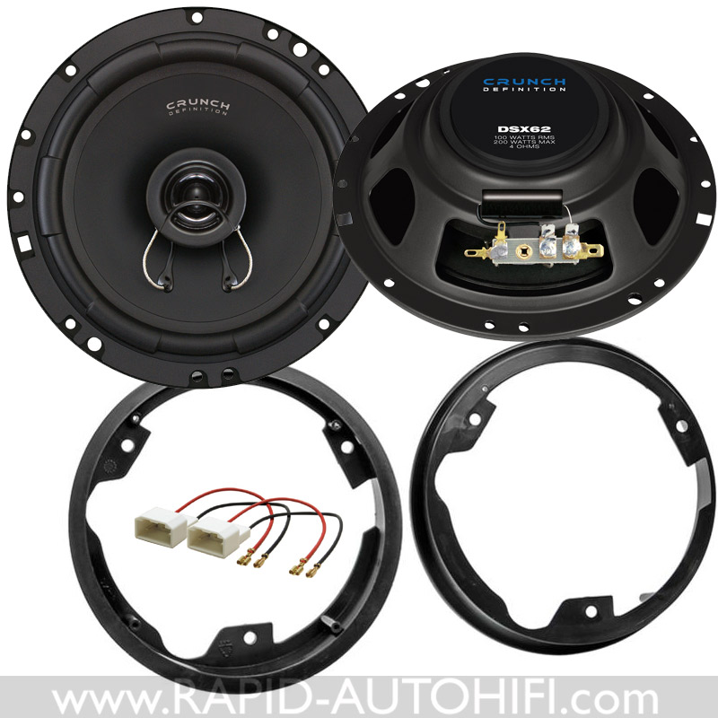 Obsahuje kvalitní 16.5 cm koaxiální 2-pásmové reproduktory DSX62 amerického výrobce CRUNCH a vše potřebné pro korektní výměnu. Tedy plastové montážní redukce a kabelové redukce z originálního kabelového svazku Ford na klasické reproduktorové konektory