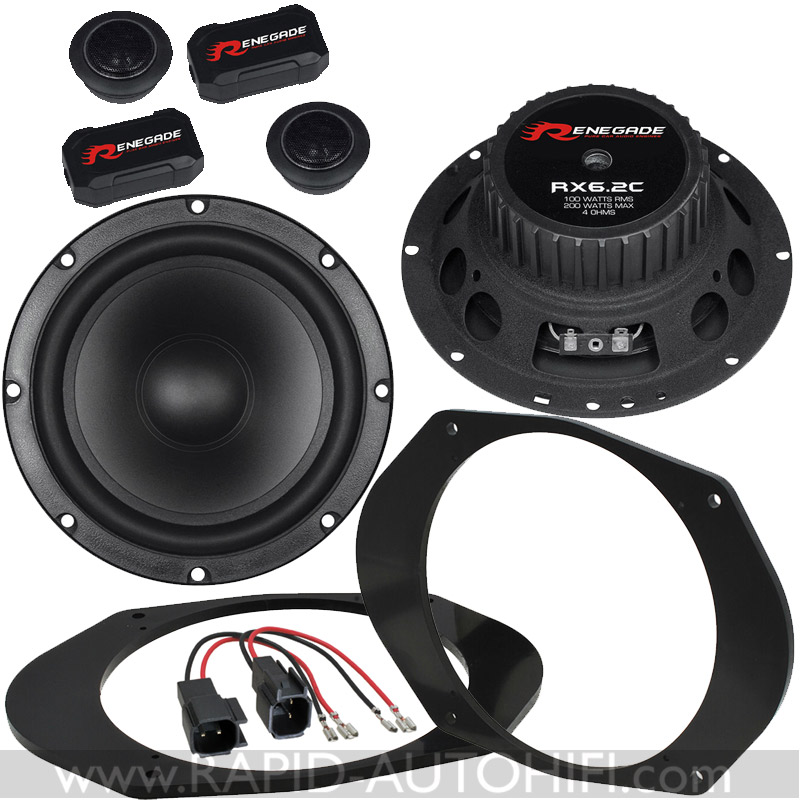 Obsahuje kvalitní koaxiální 2-pásmové 16.5 cm reproduktory RX6.2C německého výrobce RENEGADE a vše ostatní, co je zapotřebí pro montáž reproduktorů do tohoto typu vozu. Tedy montážní redukce z 6x8" rozměru na 16.5 cm a kabelové redukce z originálního kabelového svazku MAZDA na klasické reproduktorové konektory.
