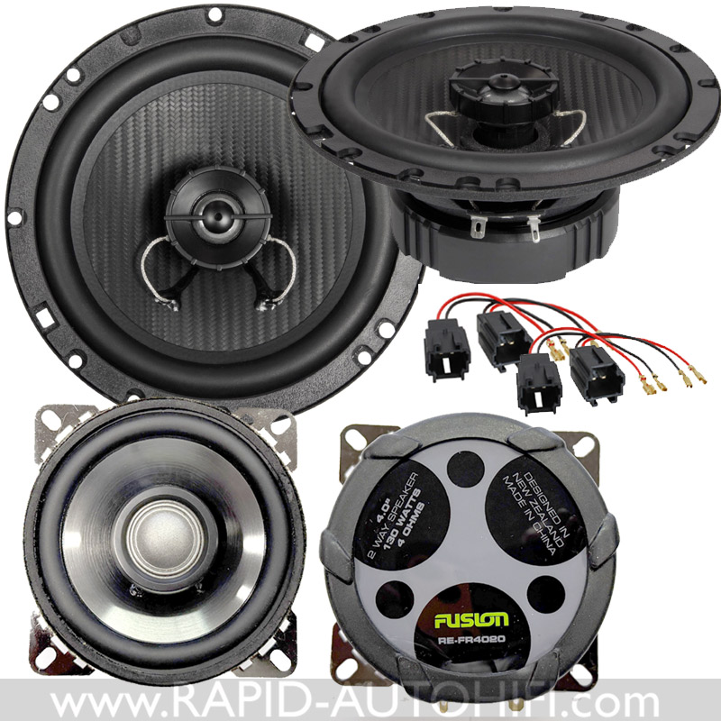 Obsahuje kvalitní 16.5 cm koaxiální 2-pásmové reproduktory HZ62 řady Horizon německého výrobce ESX (přední dveře) a2-pásmové koaxiální 10 cm reproduktory RE-FR4020 (zadní boky) řady Reactor novozélandského výrobce Fusion a kabelové redukce pro zapojení reproduktorů do originálního reproduktorového svazku.