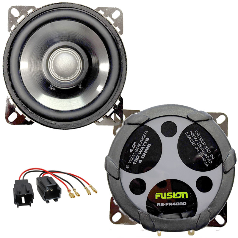 Obsahuje kvalitní 10 cm 2-pásmové reproduktory RE-RF4020 řady Reactor novozélandského výrobce FUSION a kabelové redukce pro zapojení reproduktorů do originálního reproduktorového svazku.