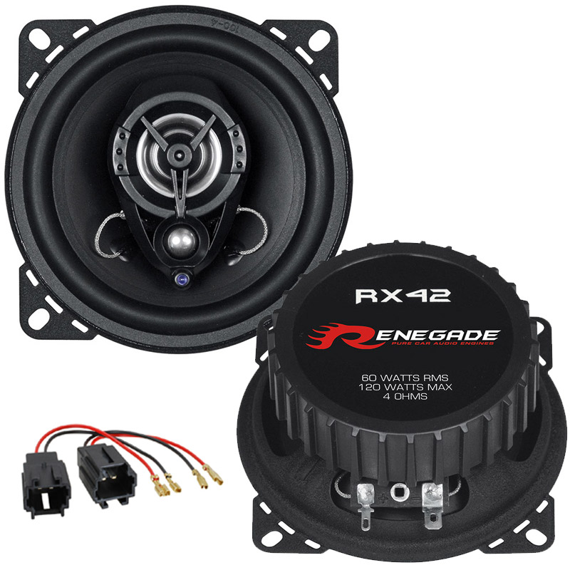 Obsahuje kvalitní 2-pásmové koaxiální 10 cm reproduktory RX42 německého výrobce RENEGADE a kabelové redukce pro zapojení reproduktorů do originálního reproduktorového svazku.
