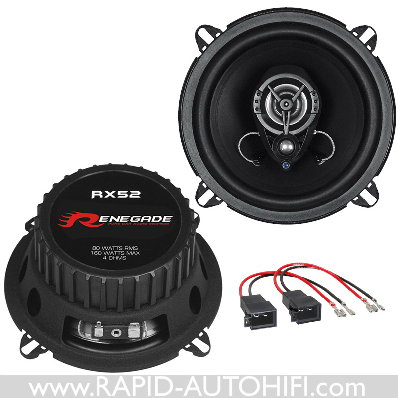 Obsahuje kvalitní 13 cm třípásmové 70W reproduktory německého výrobce Renegade RX52 a kabelové adaptéry pro zapojení reproduktorů do originálního reproduktorového svazku.