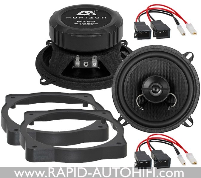 Obsahuje kvalitní 2-pásmové koaxiální reproduktory HZ52 německého výrobce ESX, kabelové redukce pro zapojení reproduktorů do originálního reproduktorového svazku a montážní plastové redukce.