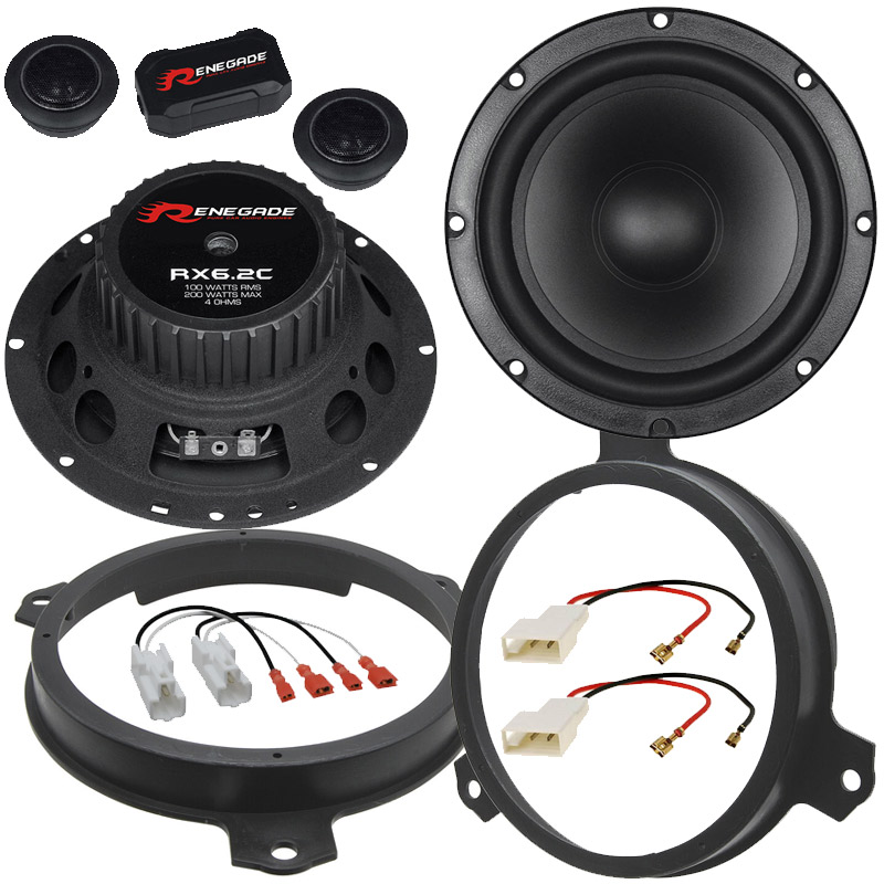 Obsahuje kvalitní komponentní 2-pásmové reproduktory RX6.2C německého výrobce Renegade a vše potřebné pro korektní výměnu. Tedy montážní redukce a kabelové redukce (ty v sadě naleznete 2 druhy - starý i nový typ, TOYOTA používala oboje typy obzv. v modelech po faceliftech, tak pro jistotu jsou v sadě oboje) z originálního kabelového svazku TOYOTA na klasické reproduktorové konektory.