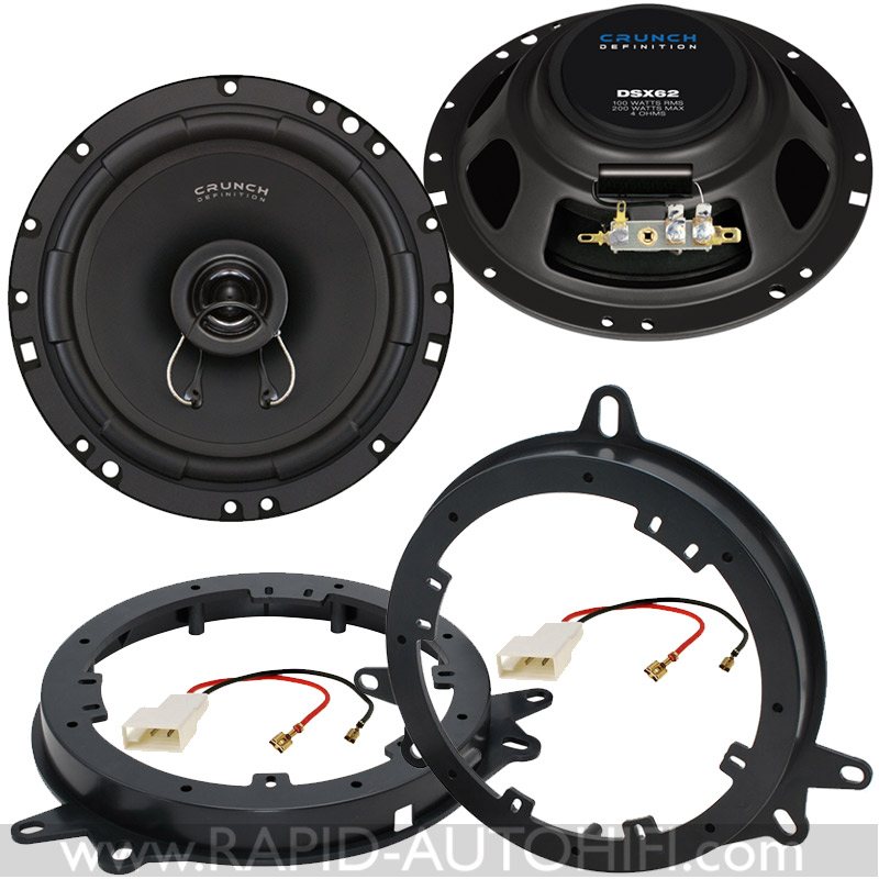 Obsahuje kvalitní 16.5 cm koaxiální 2-pásmové reproduktory DSX62 amerického výrobce CRUNCH a vše potřebné pro korektní výměnu. Tedy montážní redukce a kabelové redukce z originálního kabelového svazku TOYOTA na klasické reproduktorové konektory.