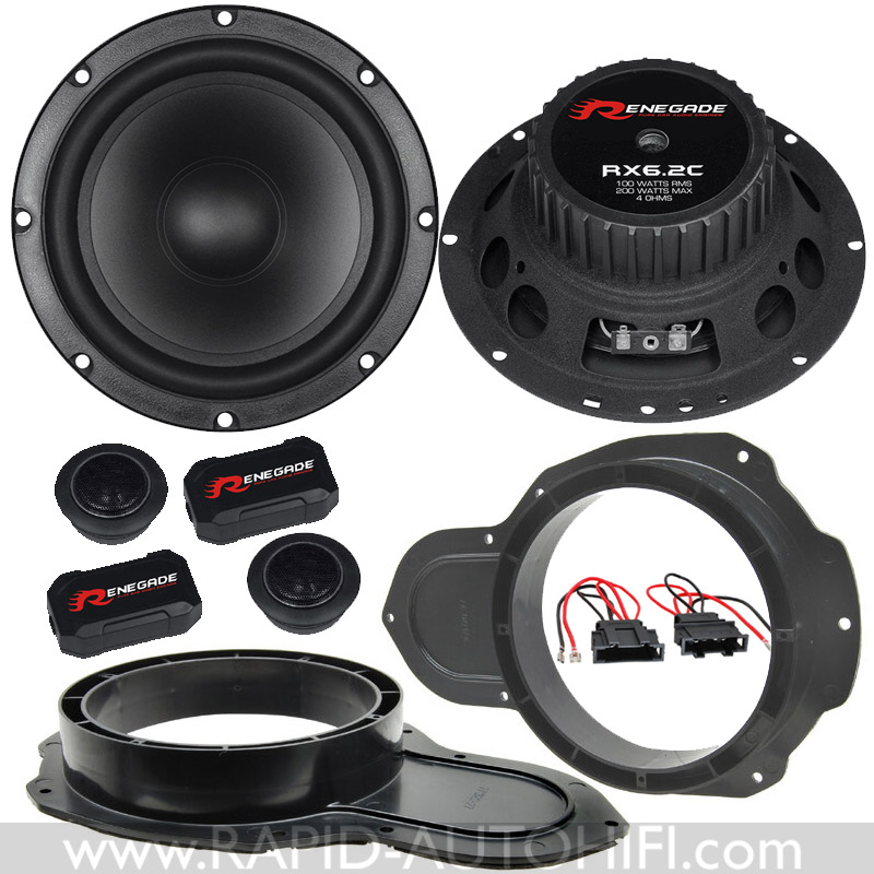 Obsahuje kvalitní 2-pásmové komponentní reproduktory RX6.2C MK2 německého výrobce RENEGADE, dále plastové redukce pro montáž do původního prostoru originálních reproduktorů a kabelové redukce pro zapojení reproduktorů do originálního reproduktorového svazku.